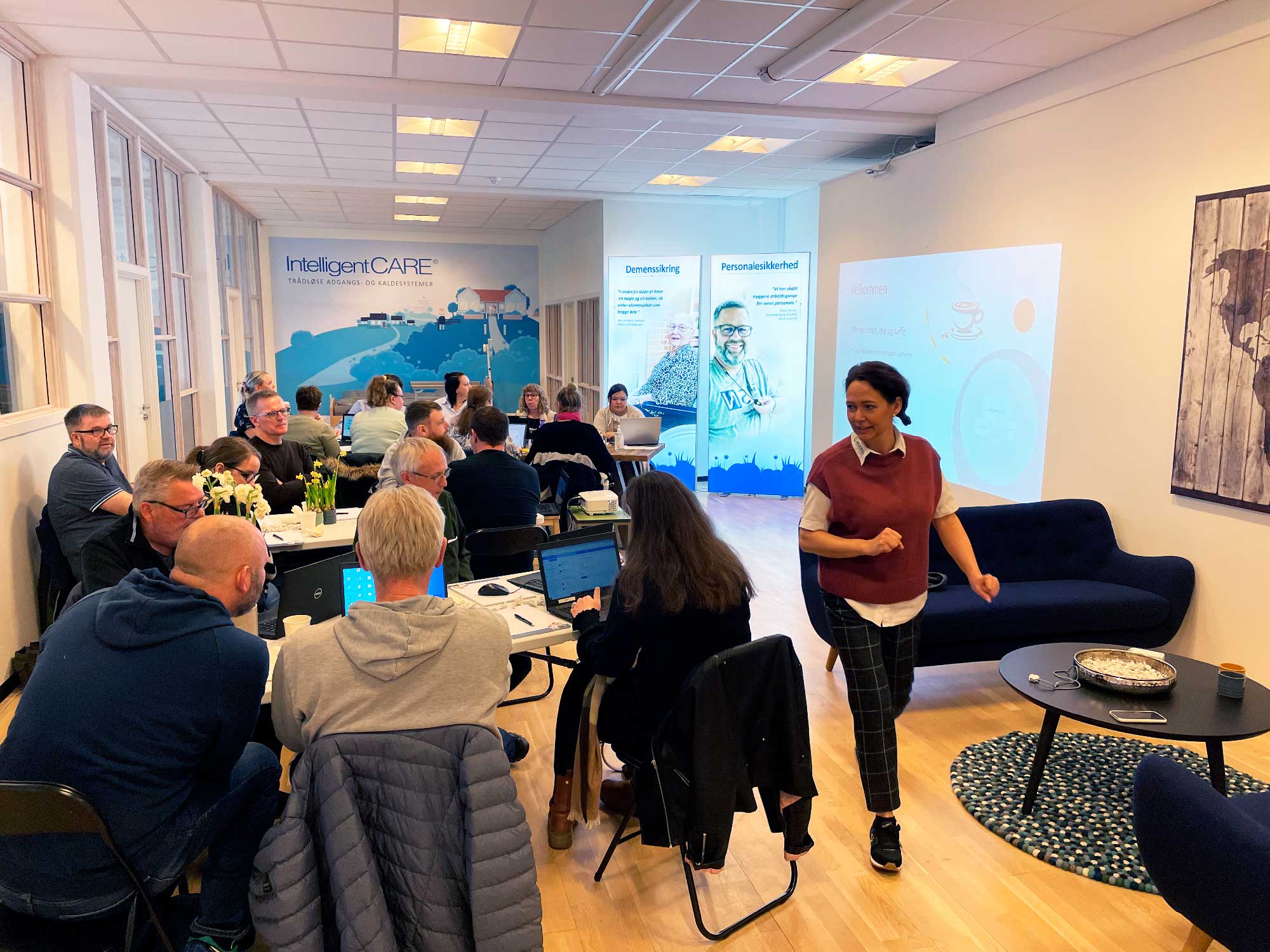 Torsdags d 7/4-22 mødte 19 brugere af IntelligentCARE op til en gratis undervisningsdag, afholdt af vores implementeringskonsulent Christie Moestrup og salgskonsulenter Kim Sidenius. Her blev plejepersonale og ledere fra både plejehjem og bosteder, opdateret, undervist og uddannet som administratorer. Mange deltagere, havde på forskellige niveauer, allerede erfaring med IntelligentCAREs kaldesystem og derfor blev undervisningen tilrettelagt derefter.